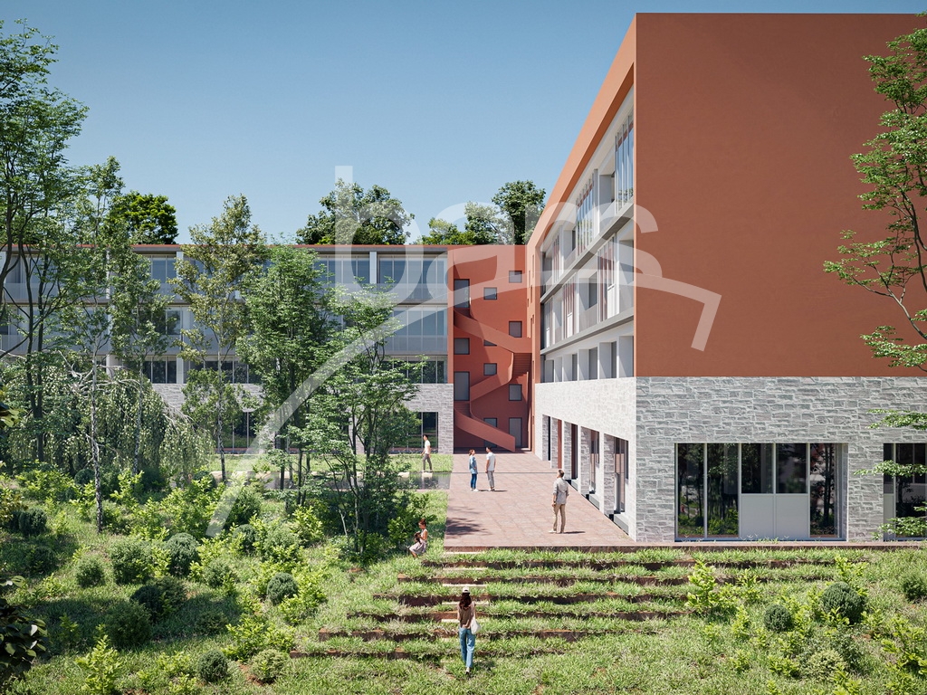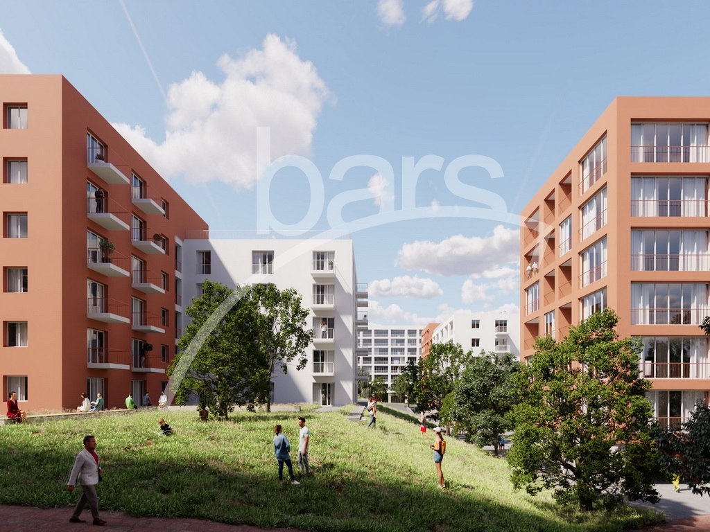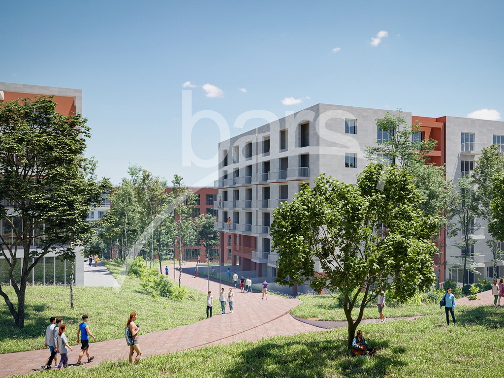 75 thousand square meters of land from the total 120000 sq.m. area will be allocated for well-kept green courtyards, fountains, paths and an artificial pond.