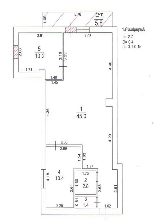 Առաստաղի բարձրությունը (մ): 2.70