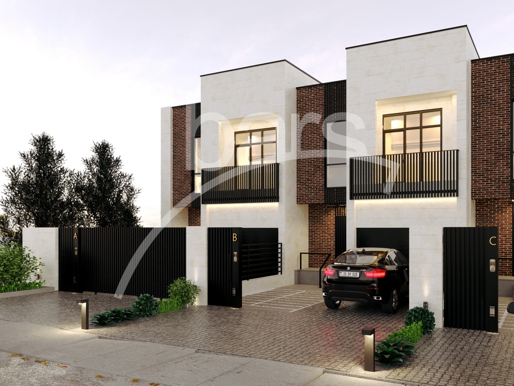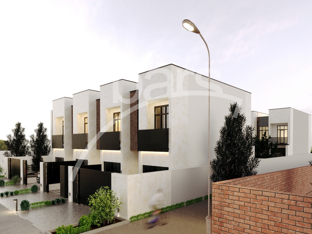 Жилой комплекс представляет из себя 2 ряда  двух и трех этажных построек. Площадь двухэтажных домов - 185 кв.м, площадь трехэтажных домов -192,5 кв.м. Этажи соединяются друг с другом внутренней лестничной площадкой.
